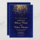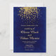 This elegant modern wedding invitation has a splash of gold confetti effect on a rich watercolour royal blue background. You can change the font's style any way you like bu clicking the "customize it" button.