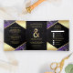 Modern Royal Purple Gold Marble Ampersand Wedding Tri-Fold Invitation