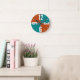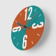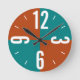 Modern rust and teal colour blocks large numbers round clock