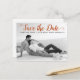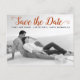 Modern rust script wedding Save the Date photo postcard. This contemporary typography Save the Date design features a black and white photo of the couple and the text "Save the Date" in a modern script font.
