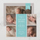 Faire-part de naissance moderne avec 4 photos sur le devant et une sur le dos. Toutes les couleurs peuvent être customisées. Il peut être personnalisé avec votre propre message et statistiques bébé.