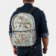 Modern rustic antique clock Blue floral pattern Printed Backpack