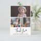 Express your gratitude in style with our Modern & Rustic Baby Shower Thank You Photo Card, a timeless keepsake to cherish. This beautifully designed card features three customizable baby photos, elegantly framed within a thin white border on a clean white background. A large horizontal photo sits at the top, with two smaller images arranged below—perfect for showcasing your little one’s sweetest moments. Below the photos, "Thank You" is written in a modern handwritten script, adding a personal and heartfelt touch, followed by your baby’s name and date of birth in rustic lettering for a warm, charming feel. The back of the card allows for a fully customizable thank you message, so you can express your appreciation in your own words. This card blends modern minimalism with rustic charm, creating a meaningful and stylish way to thank loved ones for their support
