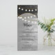 A beautiful fusion of rustic wood combined with the modern chic gold elegant lights and arch. A unique design that uses black and white tones with a dash of elegant gold. A country barn design meets the glamour of the city. Rustic wedding menu design with modern elements. Matching wedding invitations and other stationery items are also available.