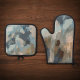 Modern rustic blue nature colours organic shapes oven mitt & pot holder set