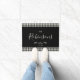 Custom doormat with your family name in script calligraphy in this modern rustic buffalo check plaid design.