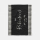 Custom elegant fleece blanket with your family name in script calligraphy in this modern rustic buffalo check plaid design.