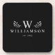 Modern rustic monogram coaster with custom family name and initial as well as year established surrounded by whimsical branch illustrations. Minimalist, simple, and stylish, this black and white family coaster is a perfect cozy housewarming gift!