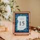 Modern Rustic Navy Blue Hydrangeas Striped Wedding Table Number