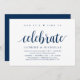 Modern Rustic, Navy Blue Script themed invitation card (with card title: now it is time to celebrate). It is perfect for your wedding elopement reception / post wedding celebration party. Add your details in matching black font / lettering.