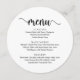 Modern Rustic Black and White, Round Plate shapes, Wedding elopement Dinner Menu. A perfect menu for your big day. You can change the script font colours and change the menu contents and fonts to meet your needs.