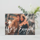 modern rustic white script photo engagement party invitation