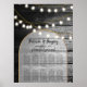 A beautiful fusion of rustic wood combined with the modern chic gold elegant lights and arch. A unique design that uses black and white tones with a dash of elegant gold. A country barn design meets the glamour of the city. A rustic wedding seating chart design with modern elements. Matching wedding invitations and other stationery items are also available.