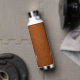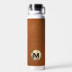 This modern water bottle design features a sable brown distressed leather background, with your monogram initial in a brushed metallic gold emblem in classic block typography for a look that is simple and luxurious.