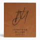 Simple monogrammed binder features a modern design with brushed script initials on sable brown leather-look printed background. Monogram initials are layered to create a unique design for you. Custom name presented in the lower thirds in simple stylish font with title role position or custom text. A modern binder for home or office, a professional monogrammed binder for your workspace. Ideal for consultants, attorneys, real estate agents, corporate or executive coaches, or any other business professional, or a thoughtful office gift for him or her.