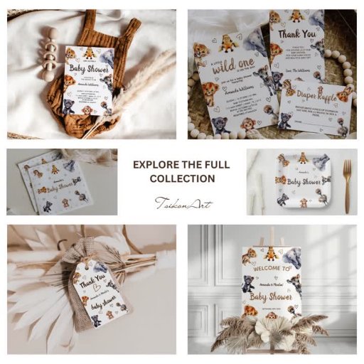 Safari Animal Baby Shower diaper raffle card is a delightful ensemble featuring charming watercolor illustrations of various adorable jungle animals: giraffe, elephant, lion, tiger, ostrich, zebra, and monkey, all rendered in soft and vibrant watercolor tones. Each animal brings a touch of whimsy and playfulness to the celebration, making it perfect for a jungle-themed baby shower.