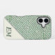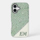 Modern sage green and cream geometric maze patterned iPhone case with monogram. Personalize your iPhone case with this chic unique design. Ideal as a personalized gift.