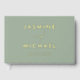 Simple, elegant wedding guest book featuring the couple's names displayed in gold foil with the date shown below against a sage green background. Personalize the spine of the guest book with your names, the date, etc. The back of the modern guest book displays your horizontal engagement photo. The chic sage green and gold foil guest book is perfect for modern weddings.
