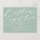 Modern sage green better together save the date with an elegant and cool hand written style brush font , all the colors are fully editable to match your wedding theme. With a simple and minimalist geometric triangles pattern at the back.
