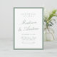 Share your wedding date in timeless style with this sage green photo save the date card. A sage green border frames the design, while graceful calligraphy for the couple’s names is balanced with clean serif typography for the event details. The back features your engagement photo surrounded by a matching sage frame, tying the front and back together with a calm, cohesive look. Ideal for garden weddings, outdoor ceremonies, romantic venues, and elegant neutral palettes, this personalized save the date pairs beautifully with classic and botanical wedding stationery collections.