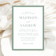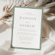Celebrate your wedding day with this modern sage green border wedding invitation, featuring a soft yet refined sage green frame that brings a fresh, timeless feel to a clean, minimalist layout. The muted green border adds gentle color while maintaining a polished, modern aesthetic, paired with classic serif typography and a subtle script accent for an elegant balance. Well suited for garden celebrations, estate venues, and modern classic weddings, this invitation offers a versatile foundation that complements both natural and formal settings. Personalize the wording to create a cohesive invitation that sets a calm, elevated tone for your wedding stationery suite.