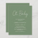 Modern sage green / olive green budget baby shower invitation featuring a simple design with "Oh Baby" in a rustic style script typography. This elegant gender neutral invitation with a minimalist layout is great whether you are having a boy or a girl.