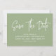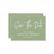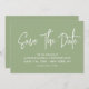 Modern calligraphy save the date in sage green with a digital scannable QR code for a website or contact information on the back.
