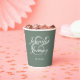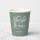 Modern Sage Green Elegant White Script Wedding Paper Cups
