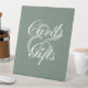 This custom wedding cards & gifts sign features a modern and minimalist white calligraphy script design on a simple sage green background. Best of wishes for your wedding and marriage! Designed by Susan Coffey.