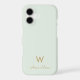 A modern, elegant monogram design with gold handwritten minimalist script typography and sans serif block typography on an elegant pale pastel sage green background. The monogram and name can be easily personalized.