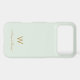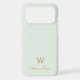 A modern, elegant monogram design with gold handwritten minimalist script typography and sans serif block typography on an elegant pale pastel sage green background. The monogram and name can be easily personalized.