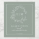 Modern Sage Green Leafy Crest Monogram Wedding Win Wine Label