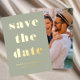 Personalized Modern Sage Green Photo Save The Date Gold Foil Invitation.