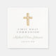 Personalized Modern Sage Green Religious Cross First Communion Napkins. Part of the Elegant Sage Green Religious First Communion Suite with matching invitation, stationery and party accessories available.
