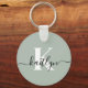 Modern Sage Green Script Monogram Keychain