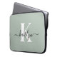 This simple, elegant 15" sage green laptop sleeve with your first name in a trendy script font in black and your first initial in a modern cap font in white is perfect for you.  It's stylish and trendy and yet very classic. It's unique - like you!