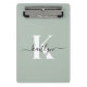 This simple, elegant sage green 9 x 6 mini clipboard with your first name in a trendy script font in black and your first initial in a modern cap font in white is perfect for you. It's stylish and trendy and yet very classic. It will come in handy in so many situations. Perfect for work, home, school.