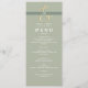 Contemporary, minimal, modern sage green wedding menu with simple calligraphy and elegant gold ampersand.