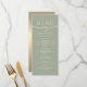 Stylish sage green wedding menu featuring a minimalist layout with an elegant gold rope heart design. Easily customizable with your own courses, names, and wedding date. A refined touch to your wedding reception table that pairs perfectly with romantic, boho, or modern themes.