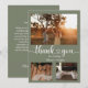 Share your gratitude in style with this elegant rustic wedding thank you card. Featuring a soft sage green background and space for your favorite wedding photos, this design beautifully captures the romance of your special day. Personalize it with your names and message to create a meaningful keepsake your guests will treasure. Perfect for rustic, outdoor, or countryside weddings, this timeless design adds a touch of warmth and elegance to every heartfelt thank you.