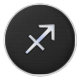 A silver chrome like Sagittarius zodiac symbol on a black snake skin style texture print background. A modern urban racy design for a great custom birthday gift idea.