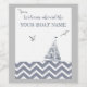 Contemporary sailing design wine and sparkling wine labels in a grey and white colour scheme. The water is a grey and white chevron zigzag pattern and the sailboat has a modern line art pattern in the sails. There are three seagulls flying overhead. Typography reads Welcome aboard the YOUR BOAT NAME, which you personalize with the button on the right. Just imagine pouring a glass of wine or sparkling wine for your friends on your boat with your very own personalized label!