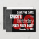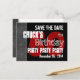 Here's a trendy save the date postcard in black and white with accents of red for a 50th birthday party. Fun! All text is customizable.