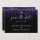 Modern Abstract Save the Date - Bold edgy purple sparkly garland cascades down the page, in handwritten calligraphy is "save the date" - couple's initials at the top - the rest of the text is simple and clean - all on a black background. Elegant wedding stationery.