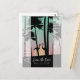 Modern design with flamingo, sunset and palm trees. Please personalize text on both sides. (Names, date, location, etc.) Appropriate for the announcement of weddings so the guests can save the date in time.