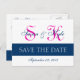 Modern, Simple, Save the Date Wedding Monogram Card Navy Blue and Fuchsia Pink. Design by Elke Clarke©. Fully customizable save the date cards to announce your wedding engagement and upcoming wedding date. Add your information and your monogram initials. You can even change the font and the spacing of the text. An elegant way to announce your special day. Save the Date Wedding Monogram Announcement Card