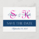 Modern Save the Date Navy Blue, Fuchsia (F400A1) Announcement Postcard