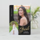 A modern script graduation announcement featuring 2 photos with arched edges and elegant script text. Custom text, on the reverse side, allows you to personalize with your grad announcement details.