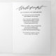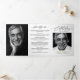 Modern black and white celebration of life trifold program providing a refined and heartfelt way to honour a loved one's memory with a sophisticated and timeless layout. This all-in-one funeral program features a bold, full-panel photo on the cover alongside elegant script and serif typography, creating a clean yet emotional tribute. The design includes space for a name and life dates, with interior panels dedicated to a structured order of service, obituary section, and a meaningful poem or words of comfort. The final panel is reserved for acknowledgments and reception details, allowing families to express gratitude with grace. With its monochrome palette, sleek script headings, and ample room for personalized content, this folded layout is ideal for families seeking a polished and respectful funeral program design that balances beauty with functionality.