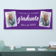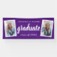 A fun way to show your pride for your graduate. Use photo banners at your events or as yard decor. This bold graduation banner features 2 photo apertures with large graduate type in centre and the name of the graduate and graduation year. Background colour is completely customizable as well as all fonts.